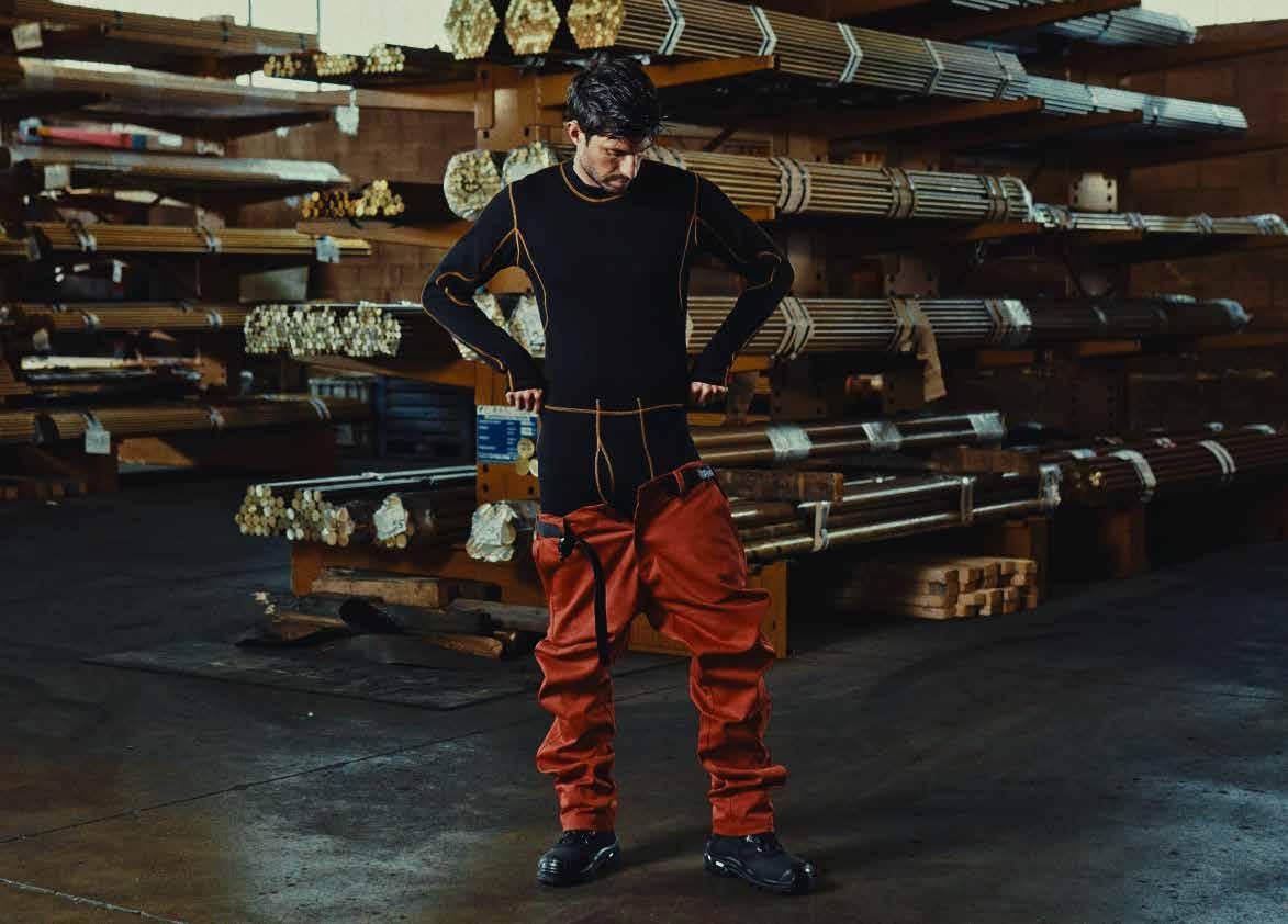 Die FORGED-Hose wurde entwickelt, um zertifizierte Sicherheit und extreme Haltbarkeit zu garantieren: Das Baumwoll-/Polyester-/Antistatik-Mischgewebe mit fortschrittlichen Behandlungen behält seine Leistung auch nach einer Industriewäsche bei 75 °C.