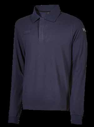 Long-sleeved polo shirt in flame-retardant modacrylic piqué with segmented, heat-sealed reflective bands that adapt to movement and improve breathability and comfort. Permanent protection against heat, flame, and electric arcs, with a technical and functional look.
