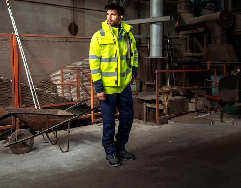 Protezione totale contro intemperie e rischi industriali Guscio in alta visibilità multirischio con costruzione a 3 strati, impermeabile, antivento e traspirante.