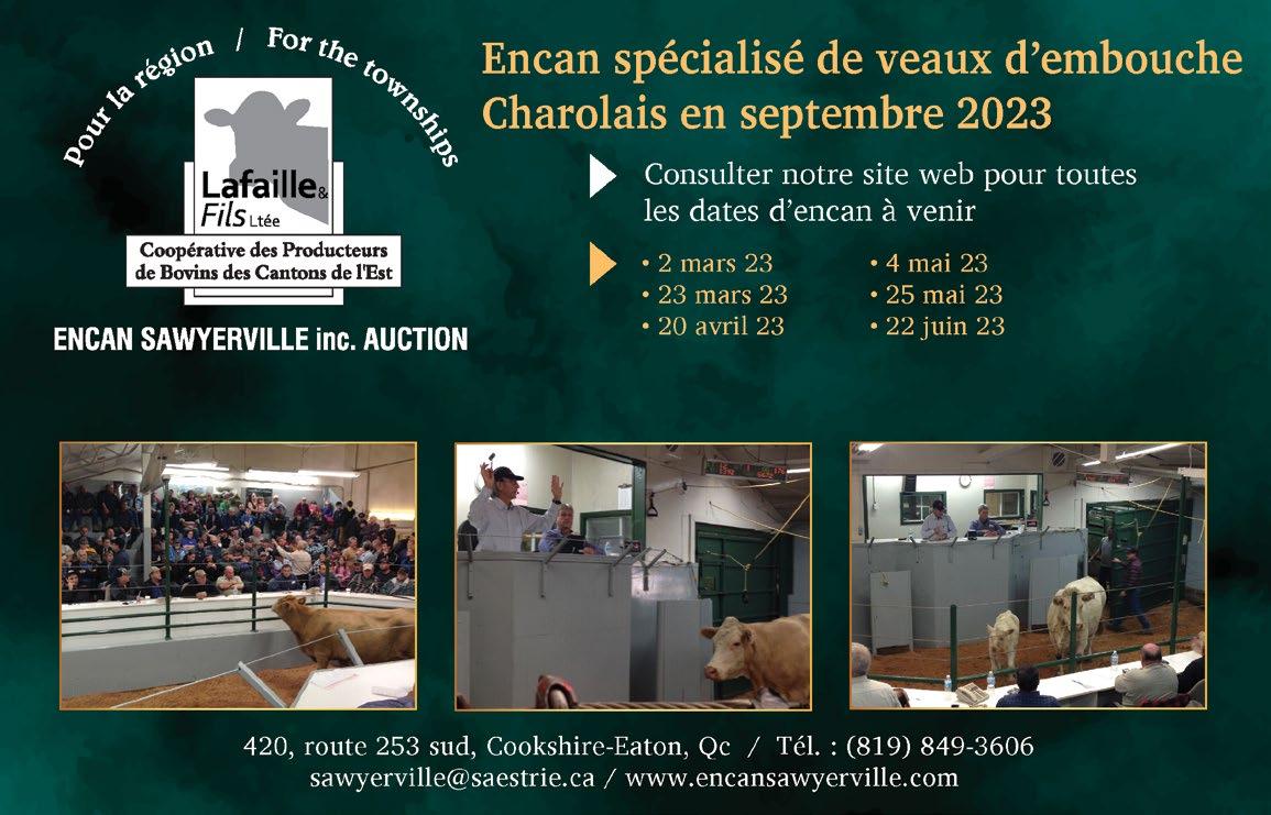 Jeudi le 28 septembre 2023 au 420, route 253 sud, Cookshire-Eaton, Qc. Encan spécial Charolais. Infos : Tél. : (819) 849-3606 sawyerville@saestrie.ca / www.encansawyerville.com