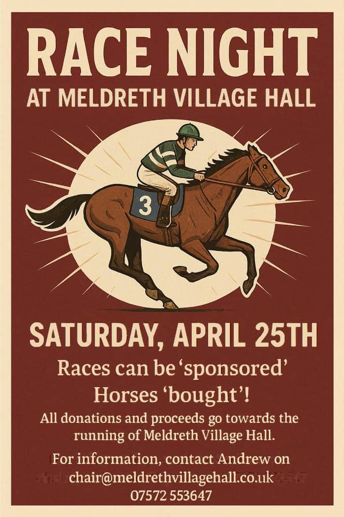 Expect a lively mix of General Knowledge, Sport, TV & Films, with questions spanning generations from Boomers to Gen Z. There’ll be a licensed bar, a raffle, prizes and plenty of friendly rivalry — all in aid of the hall. To book your table: Contact Andrew at chair@meldrethvillagehall.co.uk or call 07572 553647. Book early — bragging rights are limited!