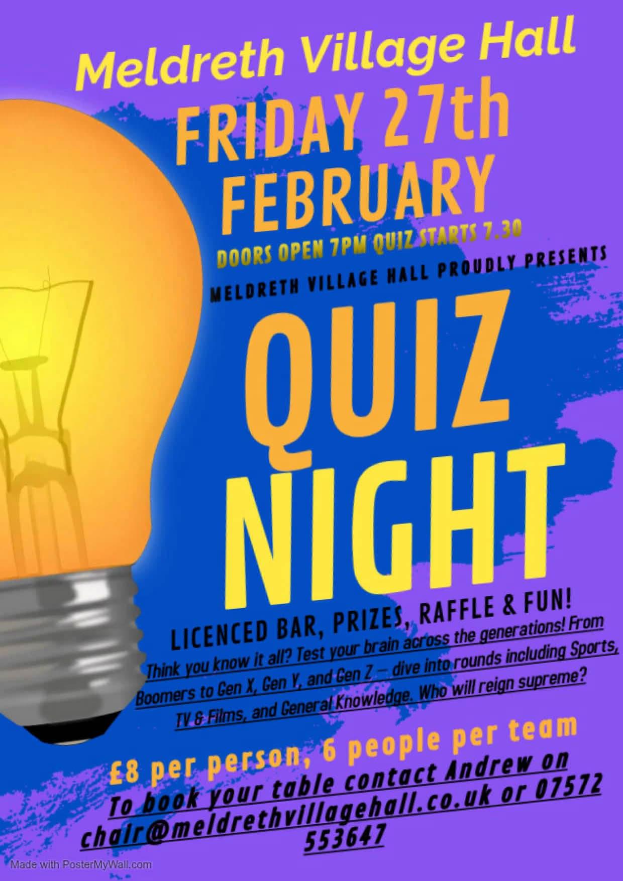 Quiz Night, Friday 27th February.