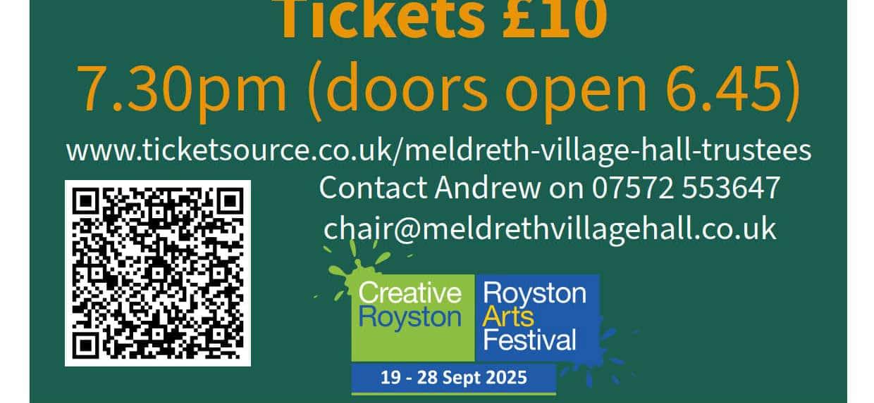 Their gig at Meldreth Village Hall promises to be an intimate evening of live music, warmth and possibly a few jokes about British weather. Tickets are available online at www.ticketsource.co.uk/meldreth-village-hall-trustees (you can