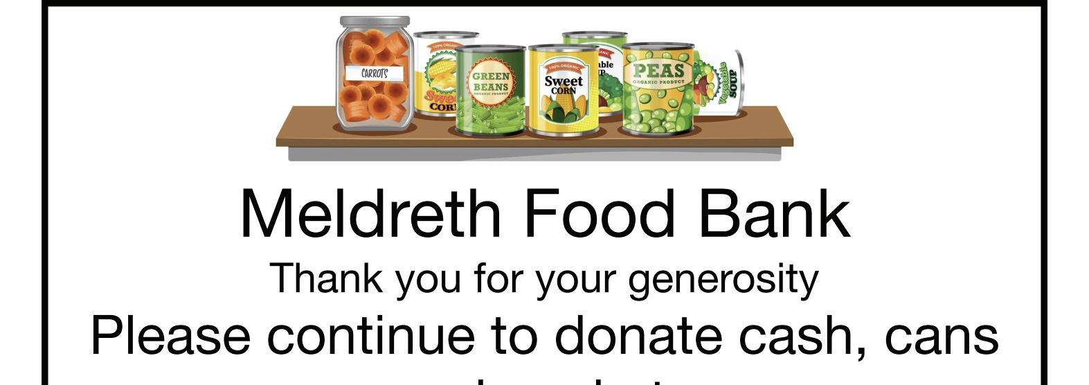Meldreth Foodbank is very short of food at the moment and needs more donations, so please consider buying an extra item with your shopping and putting it in one of the collection boxes at the Church, in One Stop or in the High Street. You can also take items to the Foodbank itself in Elin Way on Tuesday mornings.