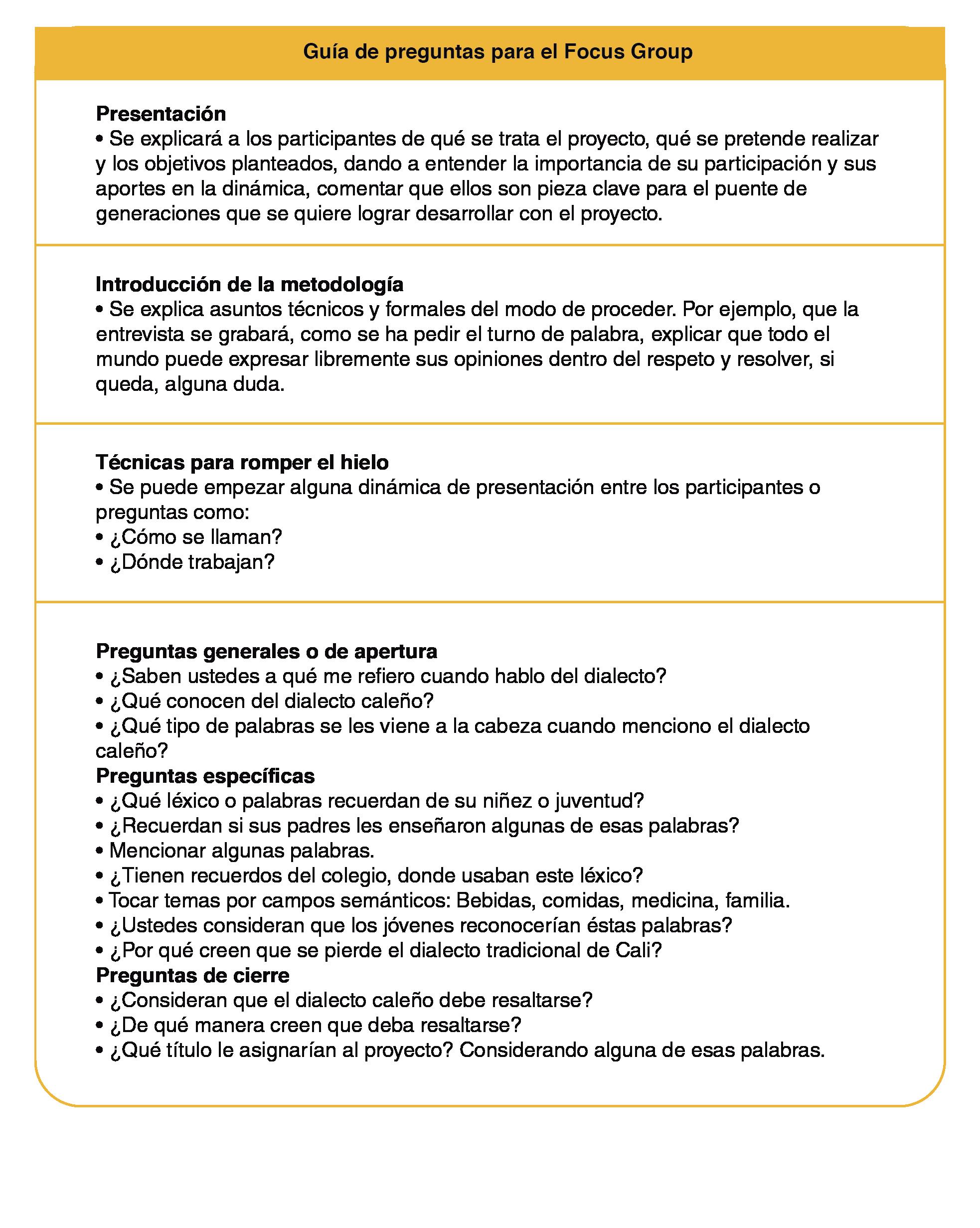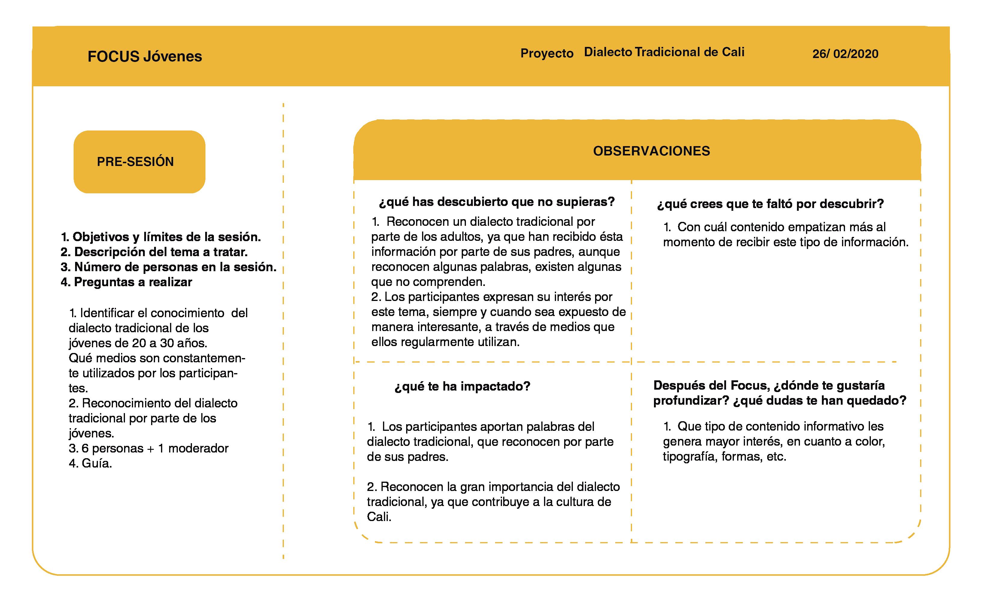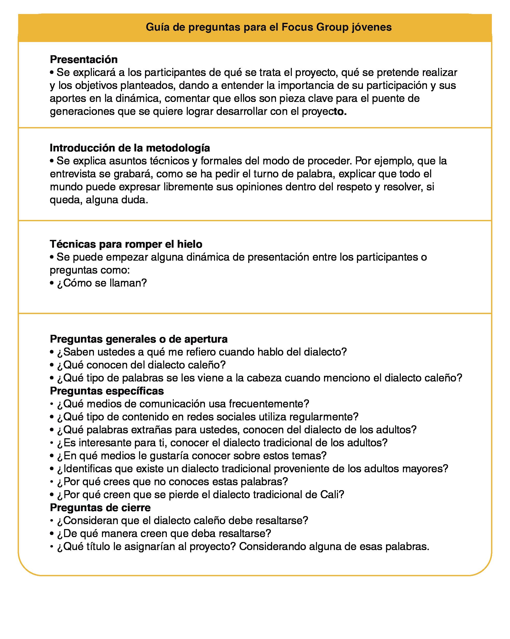 Por tal razón, se busca que a través del Diseño de Comunicación Visual, se generen nuevas for mas de empatizar con el dialecto tradicional, para establecer una relación directa con los jóvenes, a través de estrategias creativas que integren los intereses de los mismos, a través de medios de comunicación pertinentes a las nuevas generacio nes. El objetivo es crear espacios para compartir los lazos culturales relacionados al dialecto de Cali y sus aportes a la identidad de la ciudad, dejando una herencia oral, que parte de un pa trimonio cultural, preservándose en el tiempo.