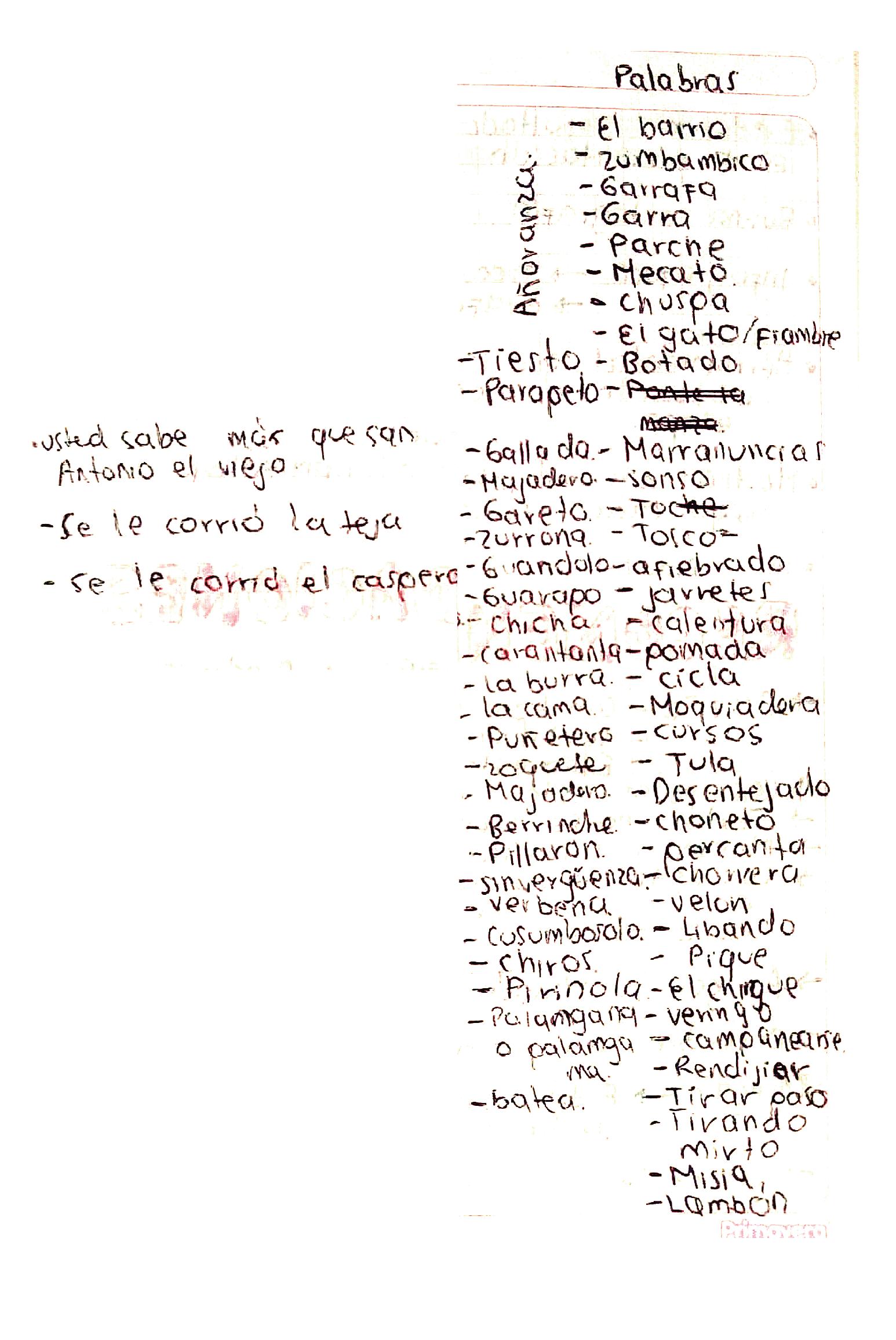 rio, se obtendrá la información con referencia a las palabras tradicionales en su vocabulario, pero desconocida para los jóvenes.