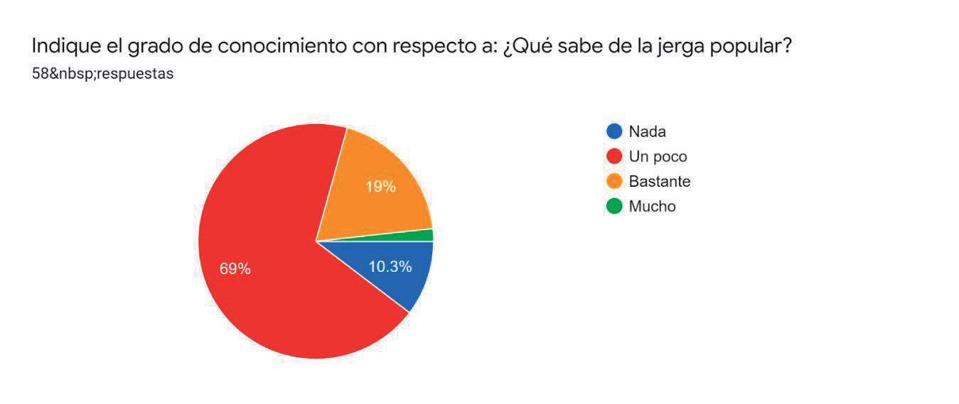 Comentario: El 69% de los encuestados responden que saben un poco de la jerga. Es así como los resultados evidencian que la mayoría de los jóvenes saben muy poco con respecto a la jerga popular.