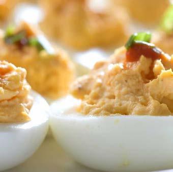 6 huevos cocidos partidos por la mitad a lo largo