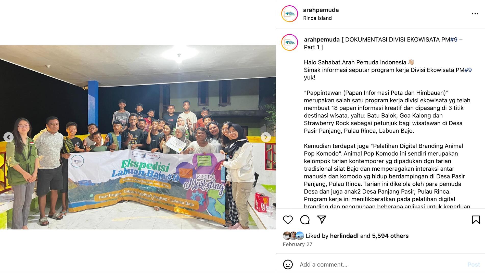 Arah Pemuda Indonesia (API) is an organization that operates in the social sector and community empowerment. The Arah Pemuda Foundation carries the theme Youth Service #9 which is a series of community empowerment activities based on Human Centered & Resource Development. This activity is expected to provide benefits to the beneficiaries at the activity location (Komodo Village) as well as for participants to dedicate themselves and learn in the field of community development & empowerment.