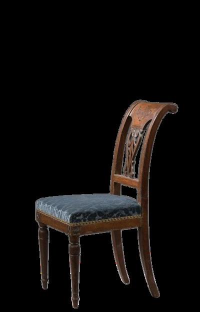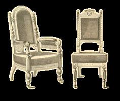 Inspirados en el estilo neoclásico. Respaldos rectangulares y con ornamentación en la base central, a veces compuesta por líneas diagonales o cruzadas.