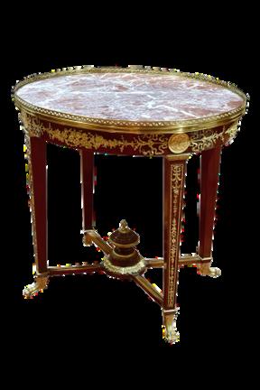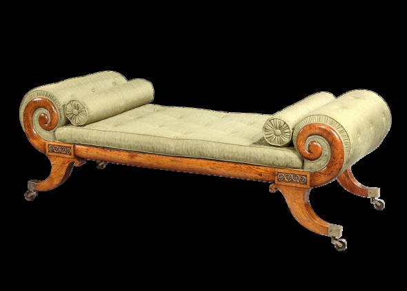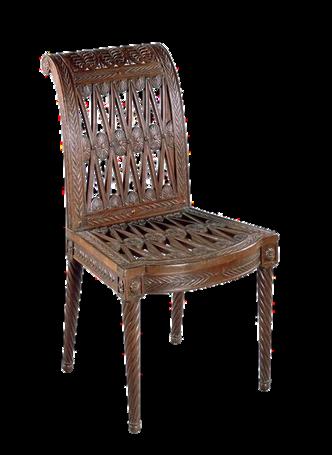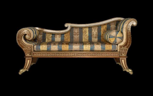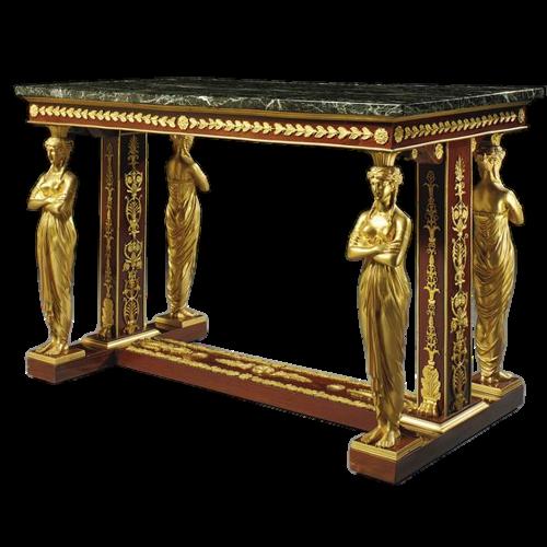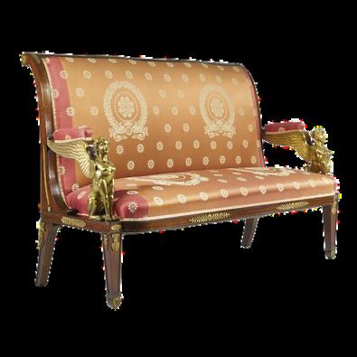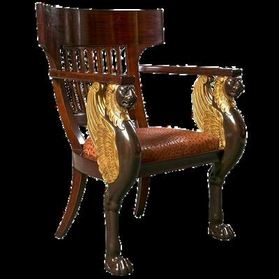 Diseño con ángulos rectos y una estética rígida y sofisticada. Los muebles se apoyaban sobre piñas de metales diversos, incluyendo el oro, principalmente en los tronos.