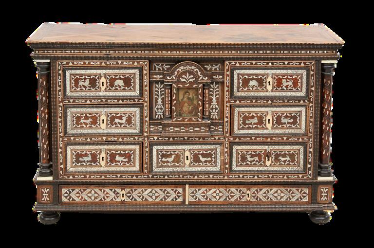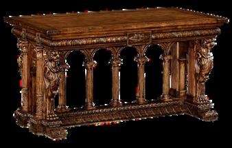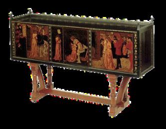 La madera se recubría con materiales más ricos, como láminas de metales preciosos, marfil y maderas finas, y la ornamentación del mobiliario se basaba en decoraciones arquitectónicas.