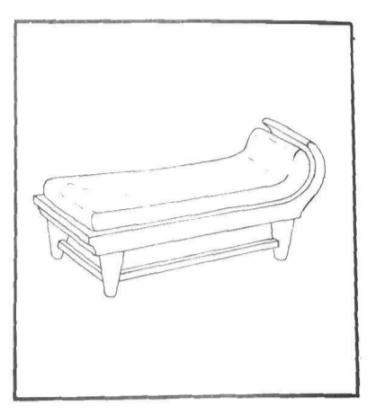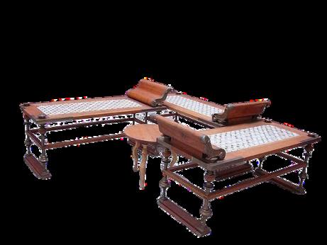 Los almohadones tenían detalles de borlas y franjas de colores. En algunos casos, se utilizaban incrustaciones de porcelana en los muebles. Los travesaños podían contar con figuras u otros adornos metálicos.