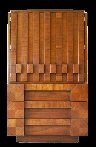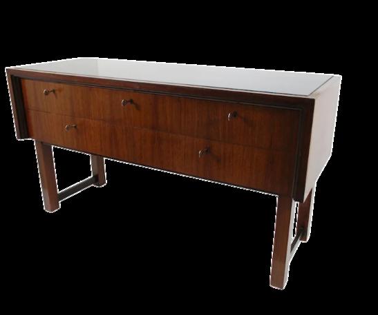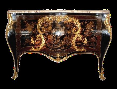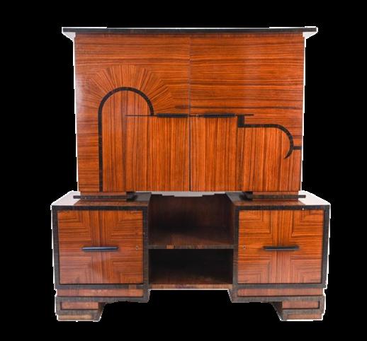 Muebles de grandes superficies con aplicaciones metálicas y la inclusión de la taracea de metal.