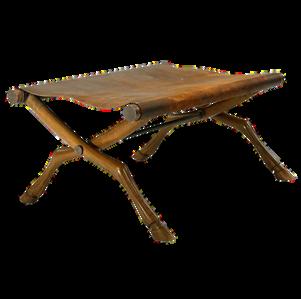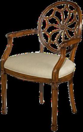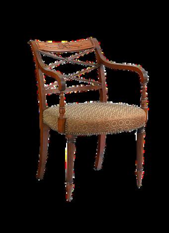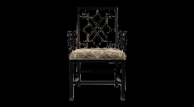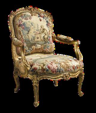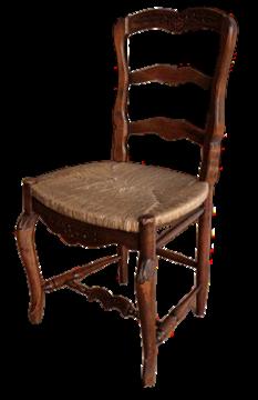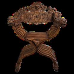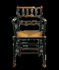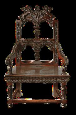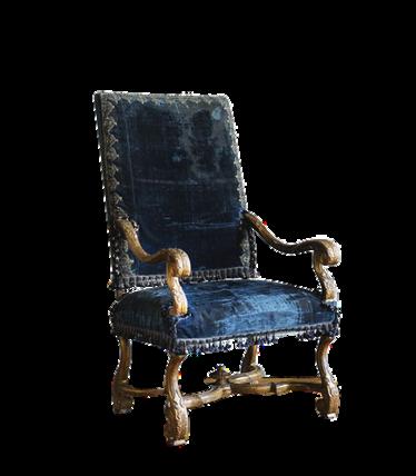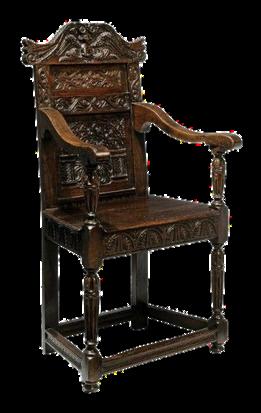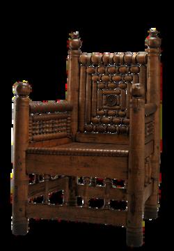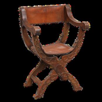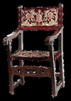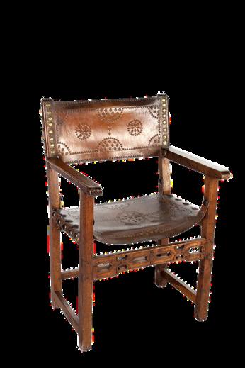 Mueble característico, el sillón frailero, diseño tosco y pesado, las patas inclinadas hacia adelante