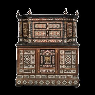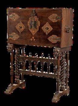 Trabajos en marquetería con incrustaciones de marmol, conchas, nácar, y trabajos en oro y plata