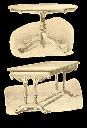 Los soportes y elementos verticales suelen ser tallados o torneados y el mueble en general tiene un aspecto más ligero y racional. Durante esta época también se empleaba la técnica para curvar la madera por el calor.