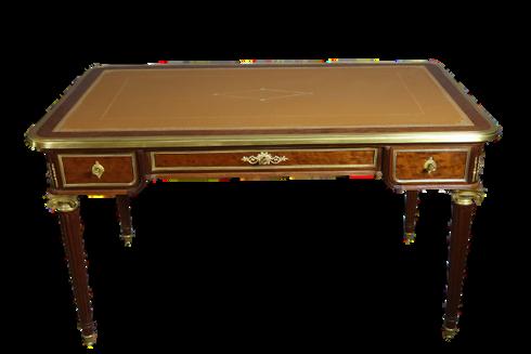 Madera Caoba y adornos de bronce dorado u otro metal igualmente dorado.