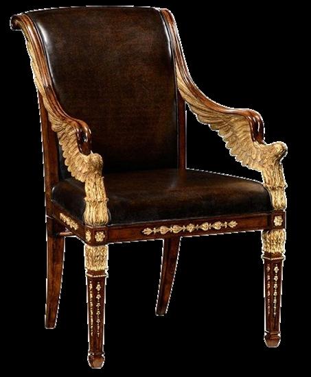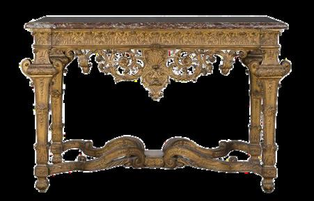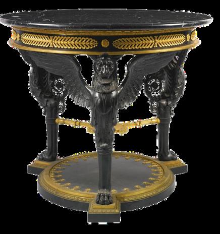 Motivos que representan esfinges, quimeras y patas de león o temas simbólicos como el alado Mercurio.