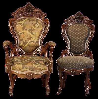 En la primera época del estilo, los muebles se realizan siguiendo los modelos franceses, para pasar después a una fase de amaneramiento vulgar y ornamentación inconveniente.