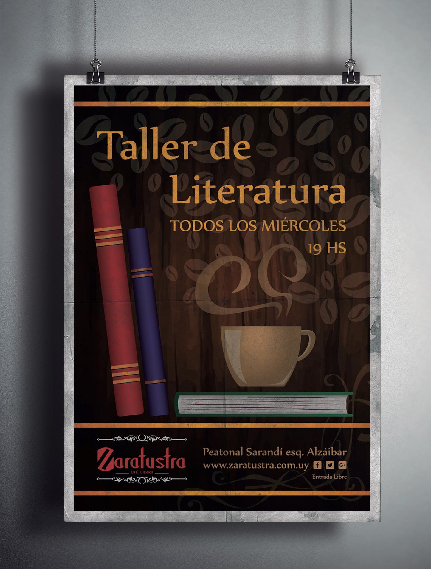 Se utilizó un estilo de ilustración con un fondo que parece pintado a pinceladas, para remarcar ese estilo vintage, artesanal y de calidad que representa al café literario.