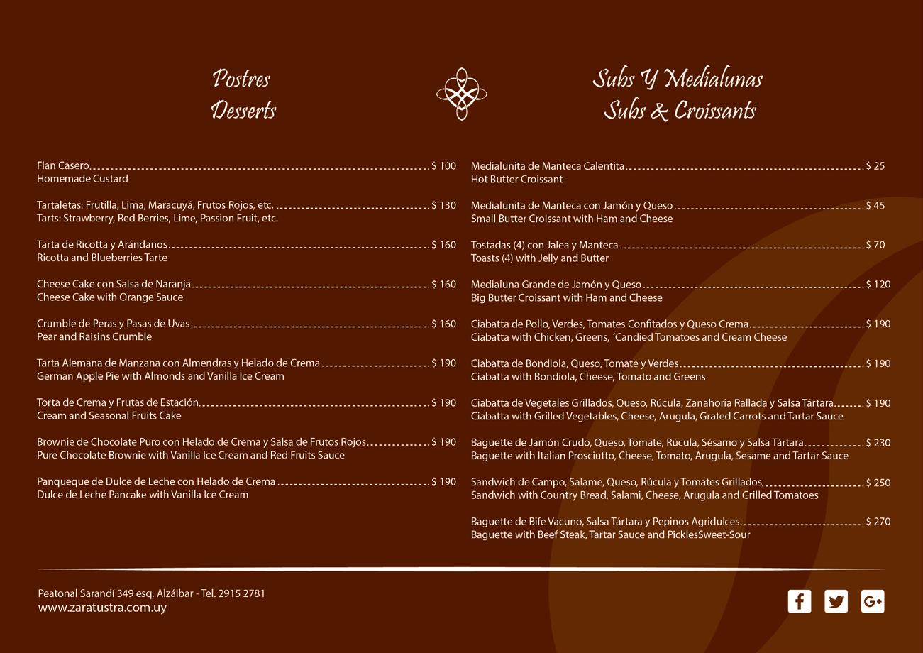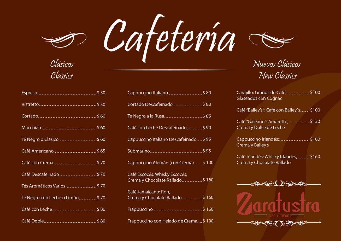 Menú de cafetería, traducido al inglés para facilitar la comunicación con los turistas.