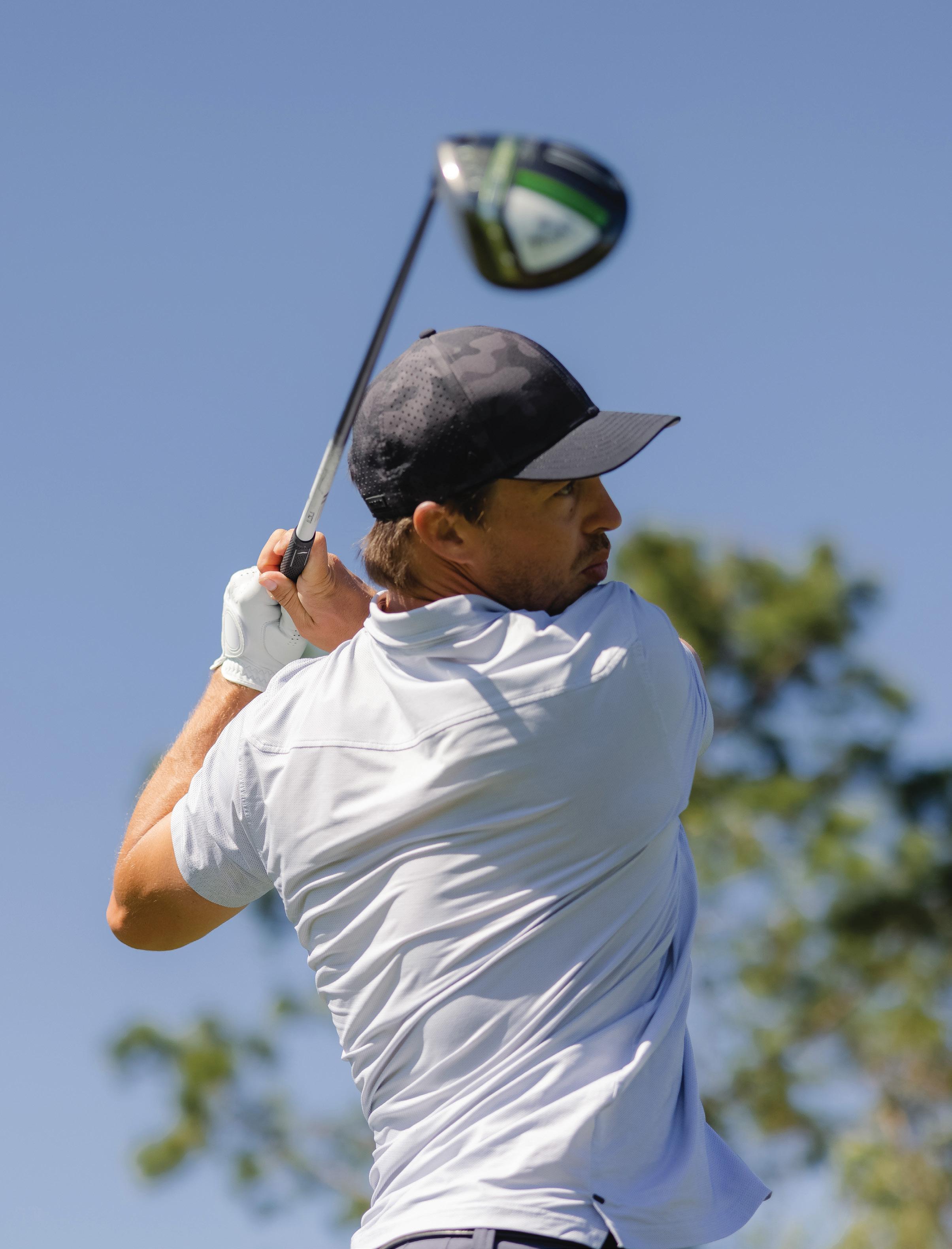 There’s so much more to the A-Game HYDRO than its timeless silhouette. Let’s talk performance. The hydrophobic tech-engineered exterior is specifically crafted to bead away water and prevent absorption. This translates to a cooler head, a clean and dry hat. It’s the melin superpower of wearing the same hat to both an active day on the links and out for the night. That’s bringing your A-Game.