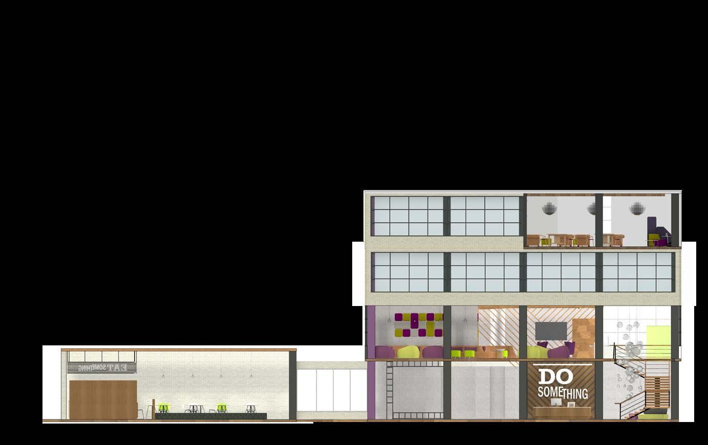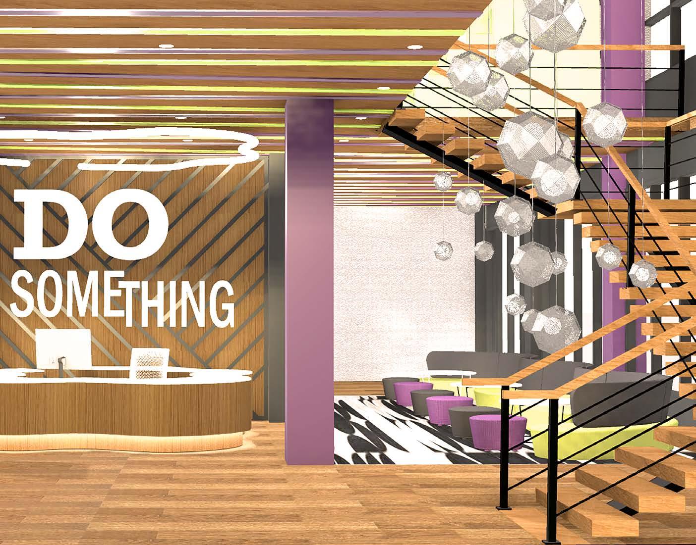 The intent of this design is to express Do Something’s mission and goals by creating an engaging and energizing environment. This will be achieved through the use of pops of bold colors and utilizing a mix of contemporary and modern furnishings. The structure will serve as a physical central presence for this primarily online community. The overall design will be youthful and fun to reflect the members while also providing flexible spaces to carry out their causes.