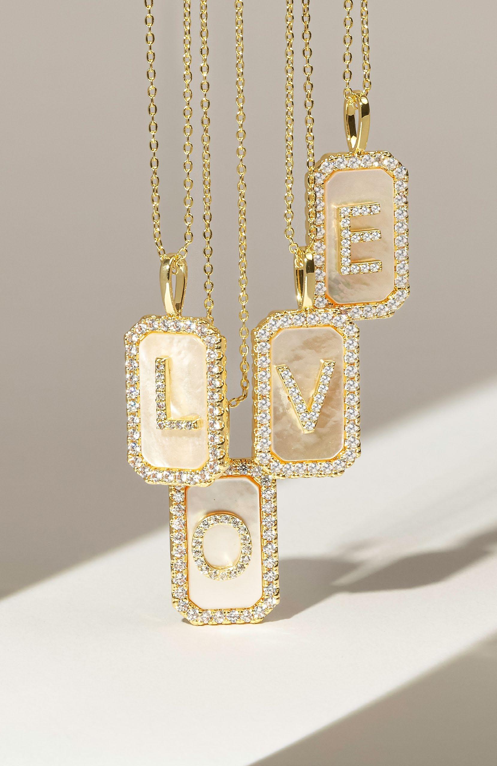 LOVE LETTERS DOUBLE-SIDED NECKLACE $35.20 WS / $88 MSRP LOVE LETTERS DOUBLE-SIDED NECKLACE $35.20 WS / $88 MSRP, LIL QUEEN’S BRACELET $38 WS / $95 MSRP , QUEEN’S BRACELET $39.60 WS / $98 MSRP BABY SLICK PAVÉ EARRING $35.60 WS / $89 MSRP , BARONESS NECKLACE 15” $74 WS / $185 MSRP , LOVE LETTERS DOUBLE-SIDED NECKLACE $35.20 WS / $88 MSRP and