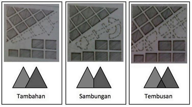 Elemen tambahan: melanjutkan pola pembangunan yang sudah ada sebelumnya. Bentuk massa dan ruang yang ditambah dapat berbeda, tapi pola kawasannya tetap dimengerti sebagai bagian atau tambahan pola yang sudah ada di sekitarnya.