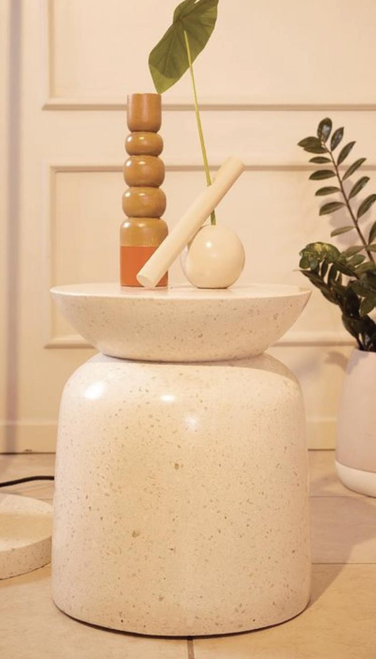 Keep your drinks ever closer with our Terrazo Side Table. You can place it in your living room, bedroom or terrace. Its terrazzo concrete technique is done with different pieces of concrete and the last layer gives the final effect. Neutral colors are used to generate a cohesive collection.