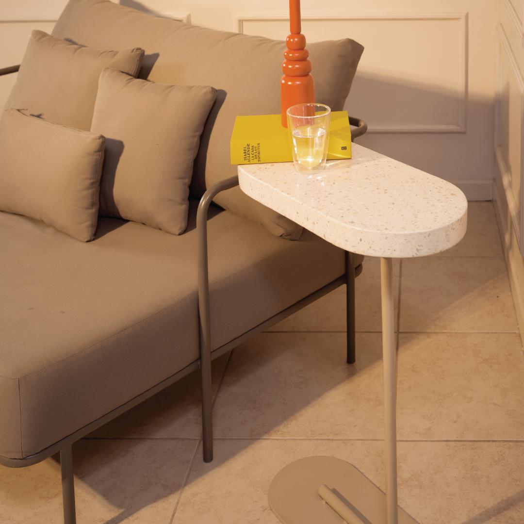 Just like the Mini Daybed, the Terrazo Side Table can be used both indoors and outdoors, giving its metal structure that offers high resistance with a concrete top.