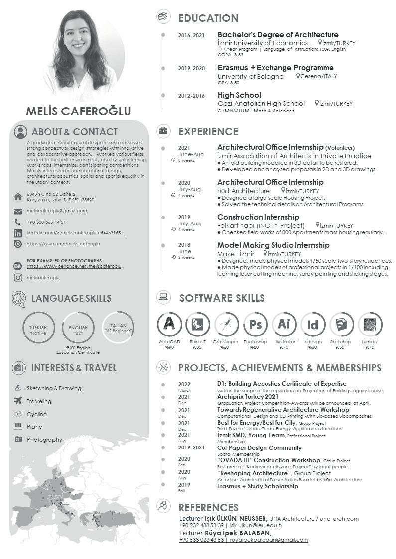 A graduated Architectural designer who possesses strong conceptual design strategies with innovative and collaborative approach. I worked various fields related to the built environment, also by volunteering workshops, internships, participating competitions. Mainly interested in computational design, architectural acoustics, social and spatial equality in the urban context.