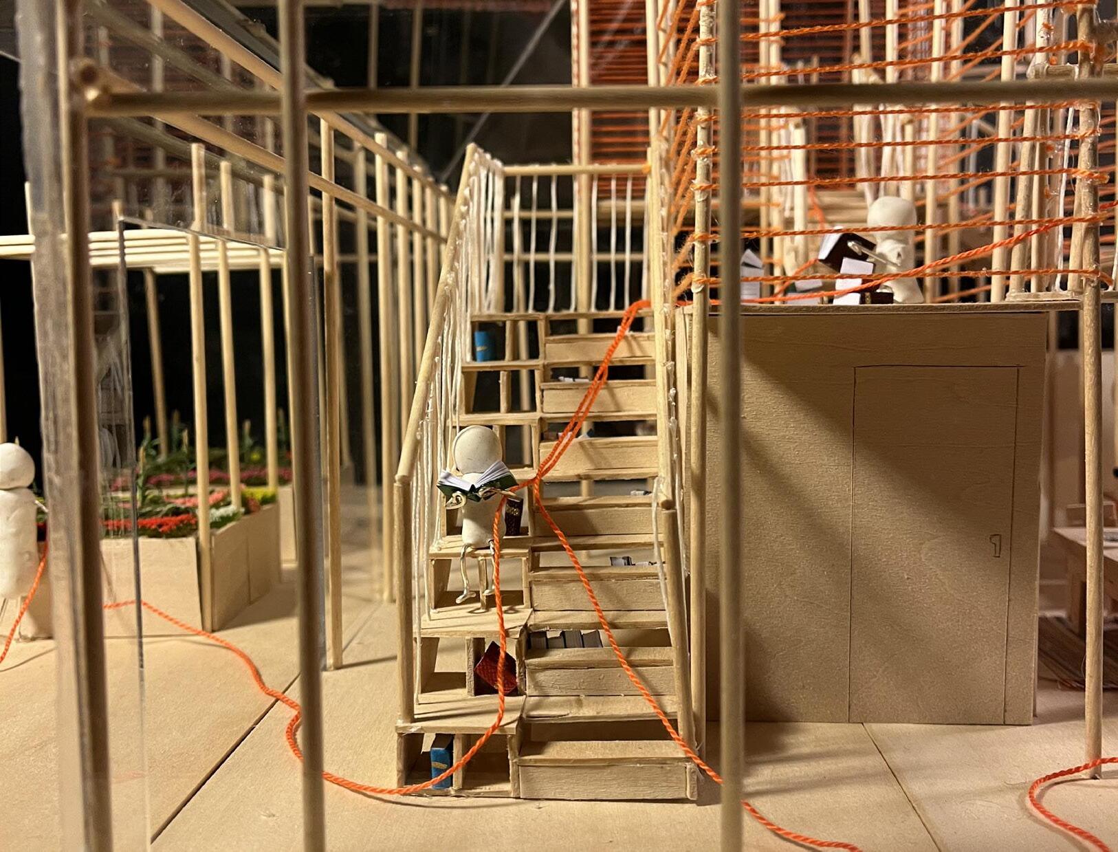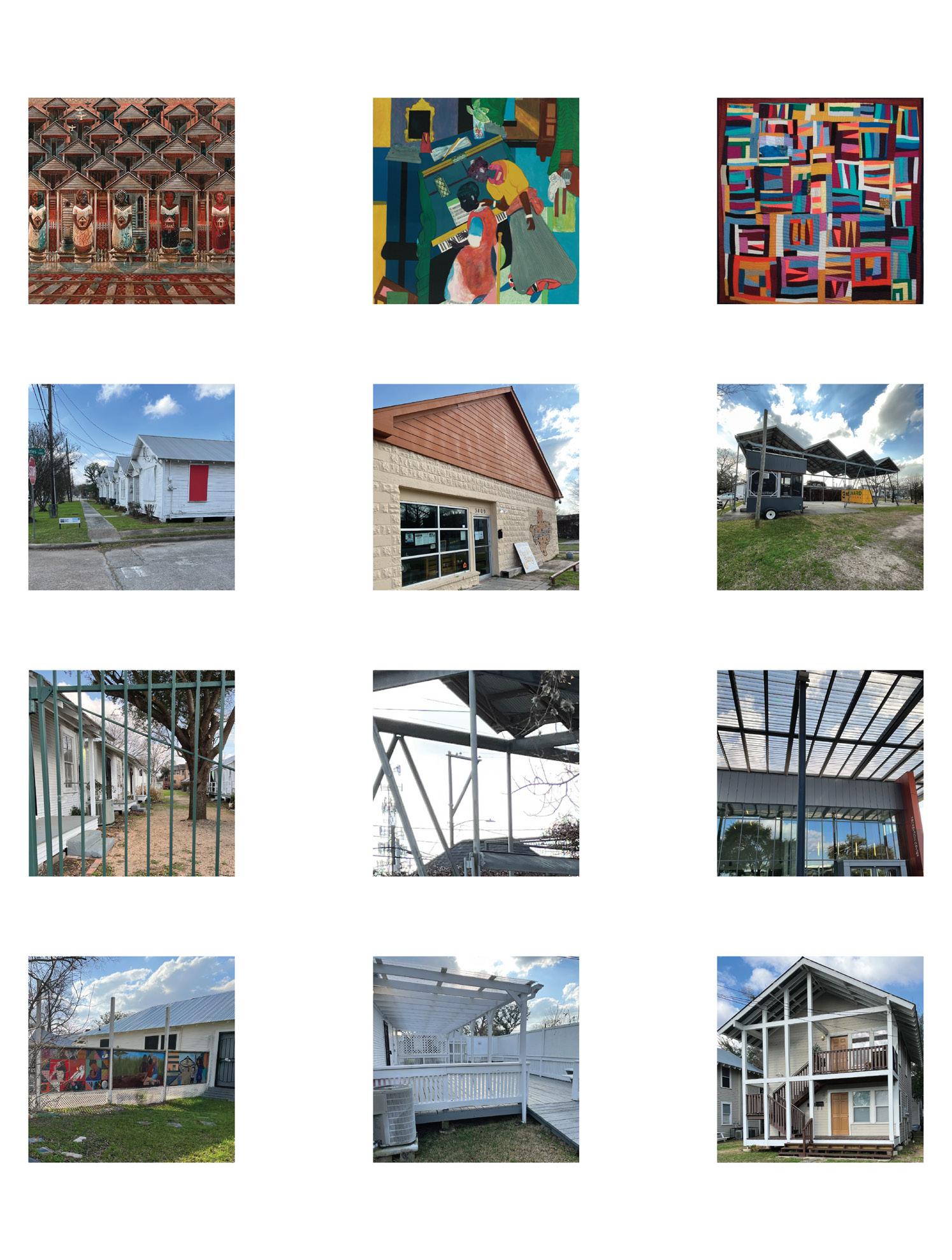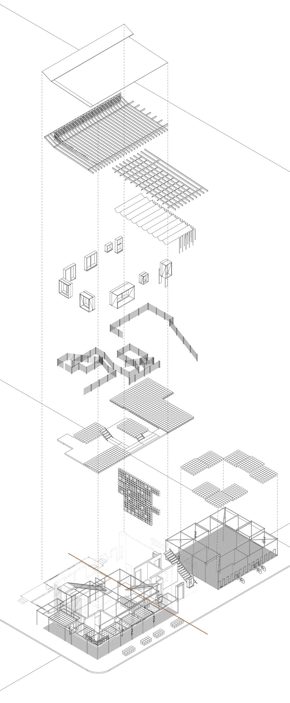 • The surrounding area is Project Row Houses and a steel gable that inspired the scaffolding system in the design.