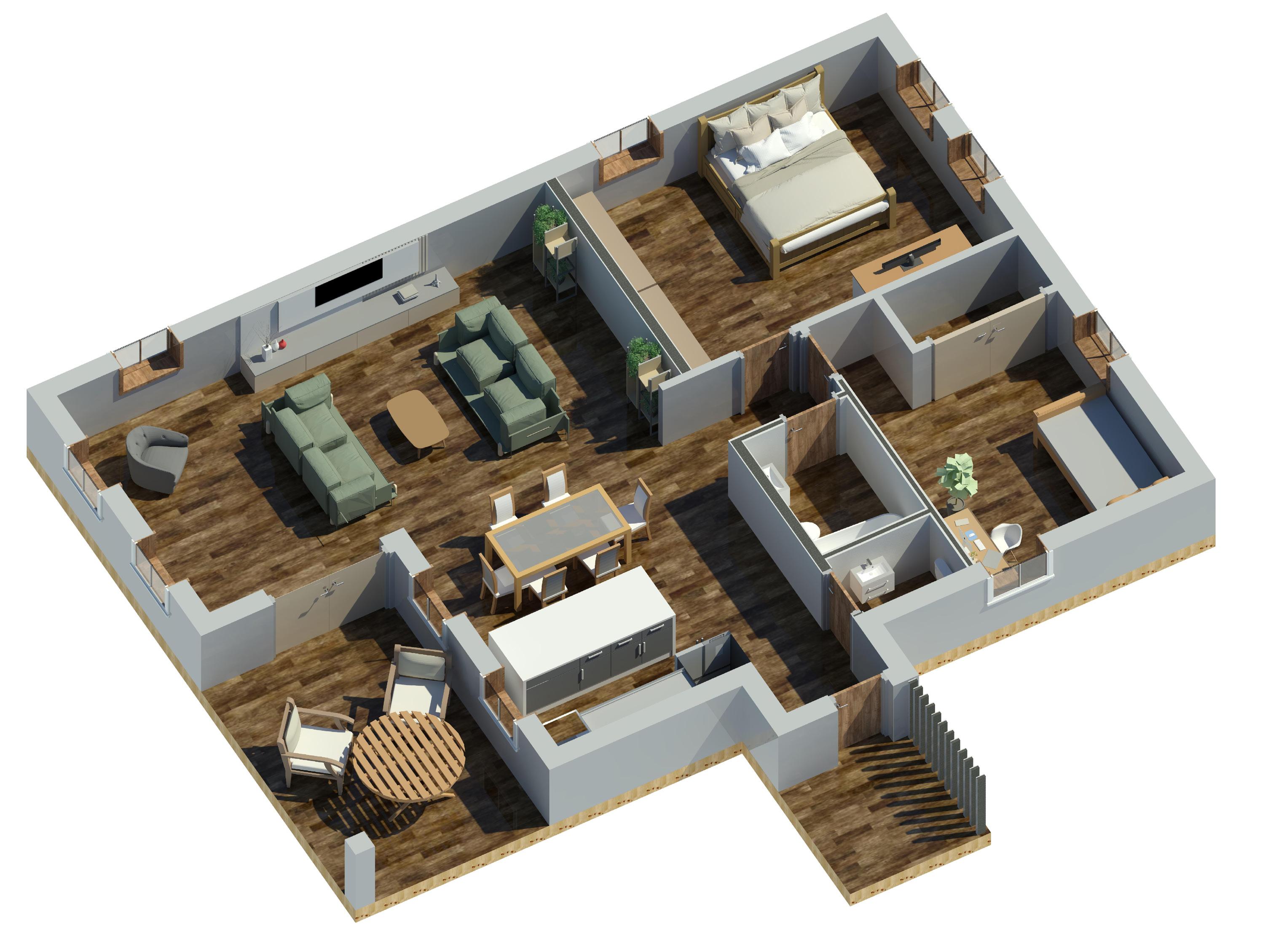 • Exterior deck to level the driveway in order to have outside movable furniture to work outdoors.