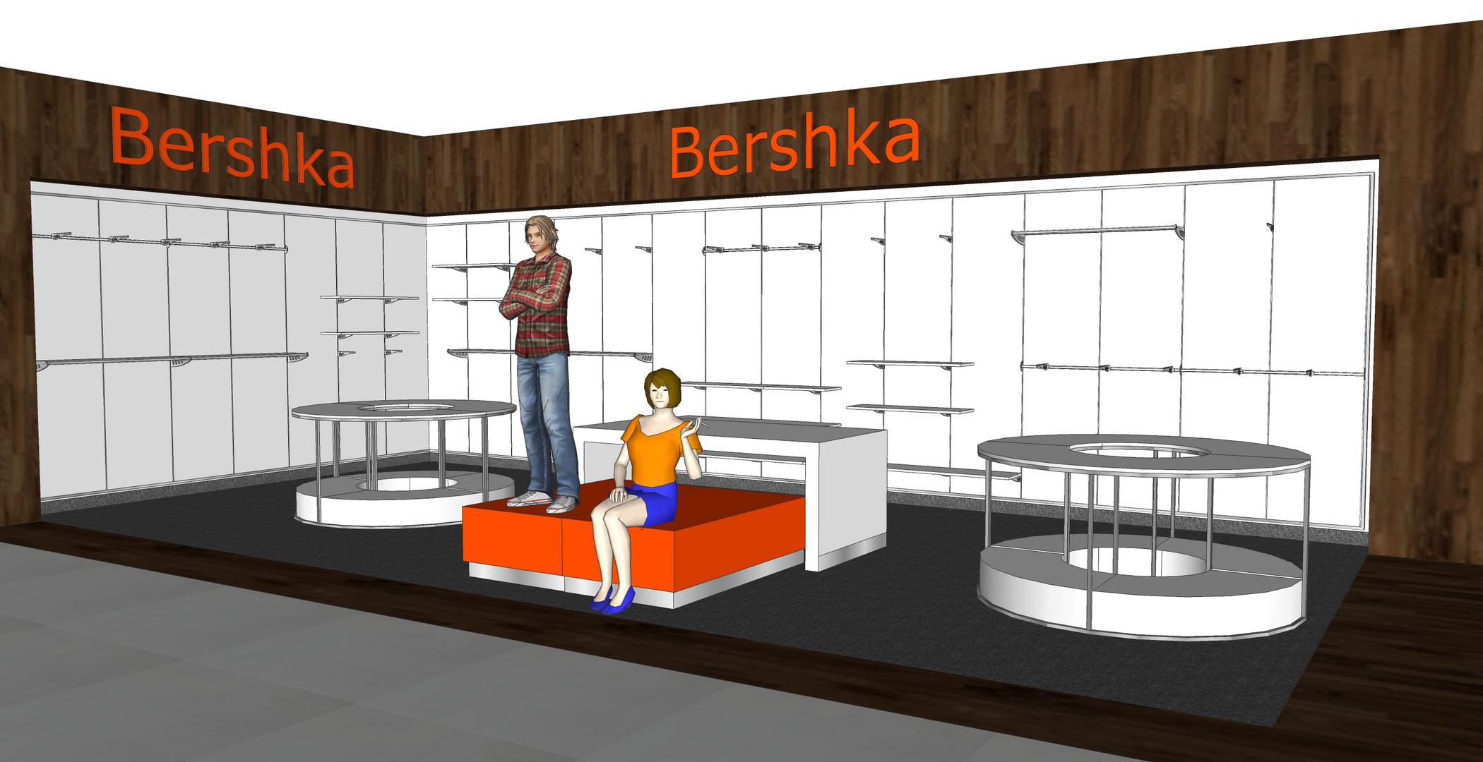 Stand design for the Bershka brand. Modular furniture was used on the perimeter and custom furniture was designed for the center.
