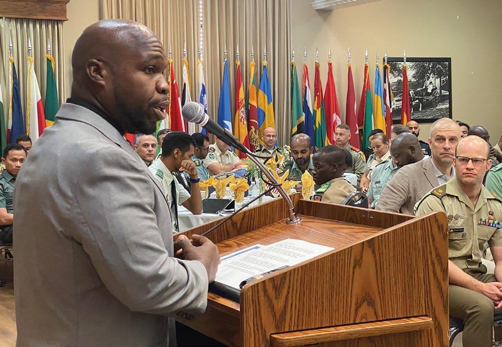 Mayor Jermaine Wilson greets International Military Students from the U.S. Army Command and General Staff College's officer course prior to the start of the academic year in July. Each year the City of Leavenworth hosts an "International Military Officer Day" and provides students with information about local and county government.