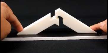 After several experiments on joint geometry and tension strings along with many failed attempts , the geometry of the joints allowed the modules to move into place and eventually lock into place with the help of tension strings.
