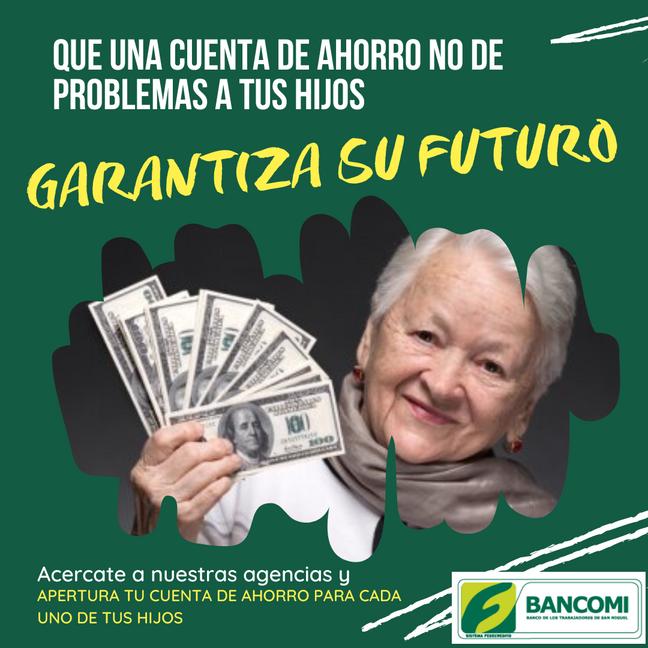En BANCOMI piensa en los hijos de socios y clientes. Ellos dependen de la protección cuando padecen emergencias, su educación y su futuro pues podemos ahorrar para ellos y mostrarles con el ejemplo el valioso hábito de ahorro, y lo más importante, involucrarlos en el crecimiento de su cuenta con la quiebra de alcancías.