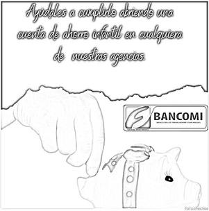 Escenadeunamanodeniñodepositando monedasenunaalcancía,conunafraseque diceayúdalesacumplirloabriendouna cuentadeahorroinfantilencualquierade nuestrasagenciasyellogodeBANCOMI