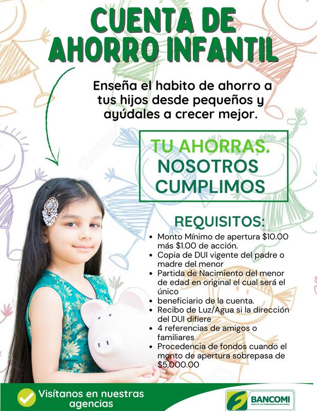 Fomentar el hábito del ahorro en los niños(as), incentivar y promover la cultura del ahorro en los niños salvadoreños y garantizar un futuro menos inseguro para el desarrollo y crecimiento de los niños