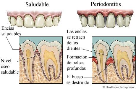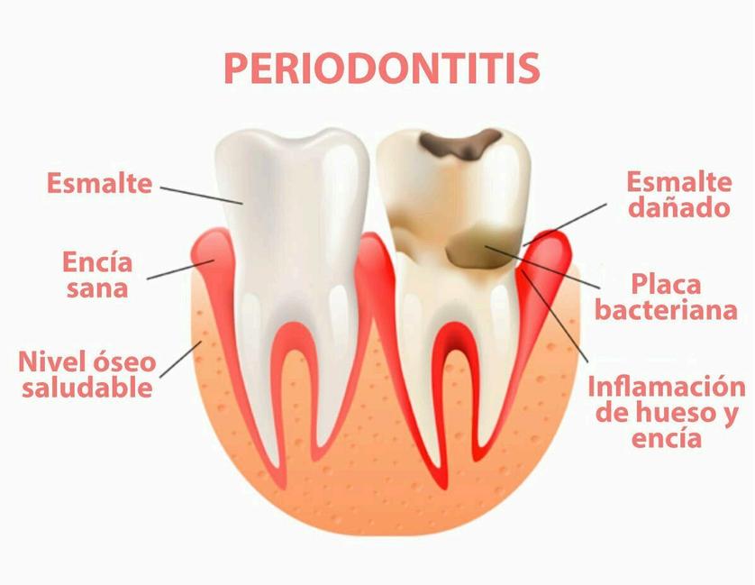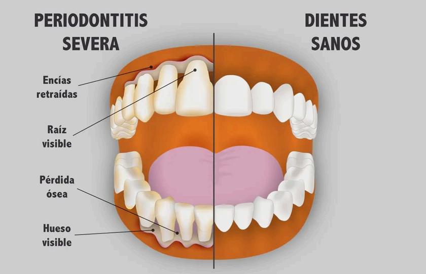 Es una infección grave de las encía que daña el tejido blando alrededor de los dientes. es una infección grave de las encías que daña el tejido blando alrededor de los dientes. Si no se trata, puede destruir el hueso en el que se apoyan los dientes, lo que puede causar que los dientes se aflojen o incluso se produzcan pérdidas dentales