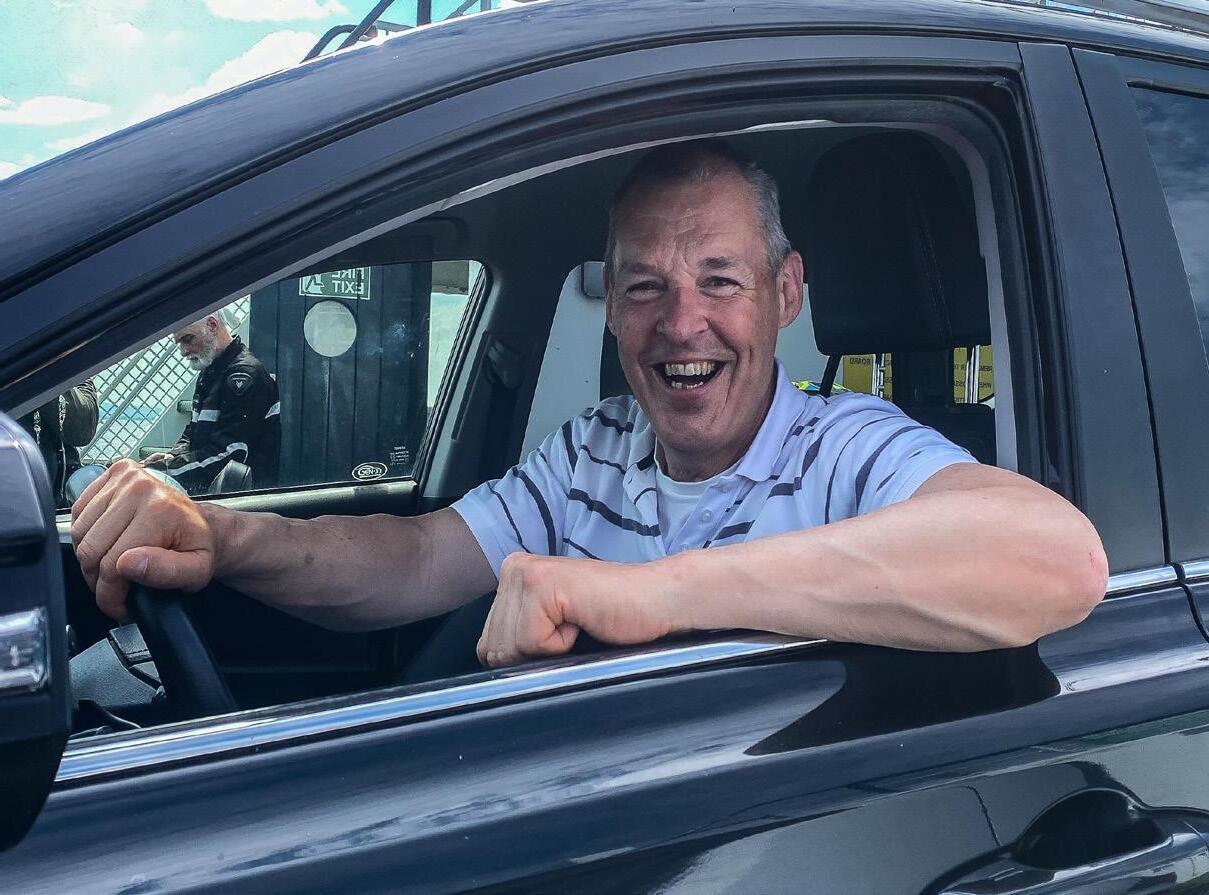 Unfortunately, Martin Brown didn’t speak Irish either. So my search continued. And on the same day, we drove our little Toyota onto the ferry from Magilligan to Greencastle. After the trip, I wanted to make a short film summary for my personal archive, so I filmed us getting on the ferry. We came to a halt next to a black estate car and the man at the wheel spoke to me: Did he look good on my video? I was a little embarrassed and thought for a moment that he