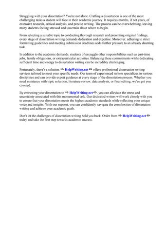 Don't let the challenges of dissertation writing hold you back. Order from ⇒ HelpWriting.net⇔ today and take the first step towards academic success.