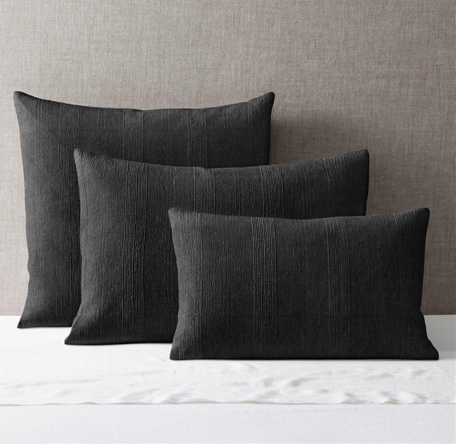 SETA RAW SILK TEXTURED PILLOW CHARCOAL 13” X 21”