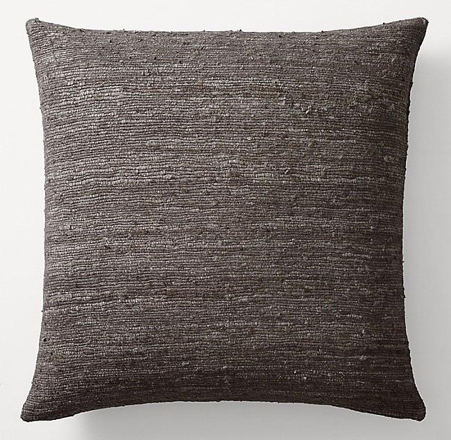 SETA RAW SILK TEXTURED PILLOW CHARCOAL 22” X 22”