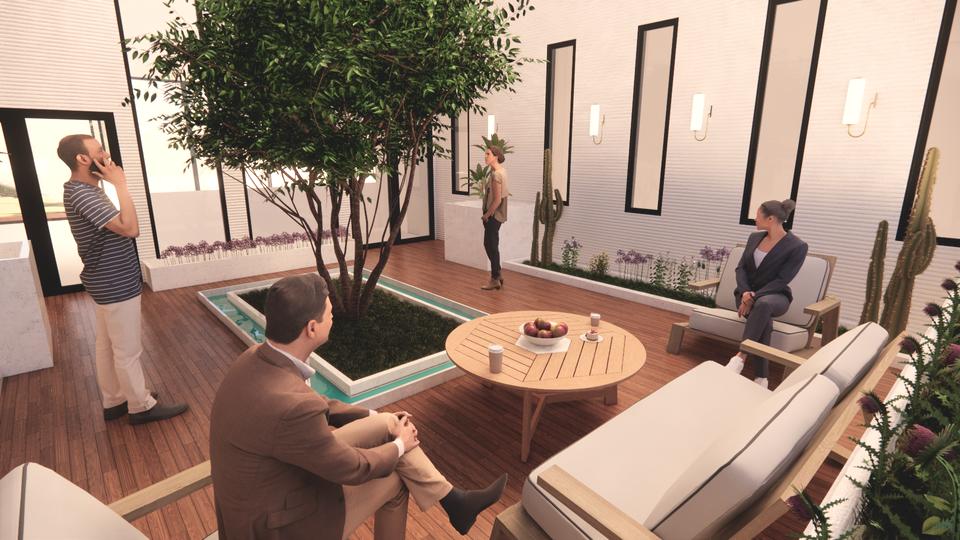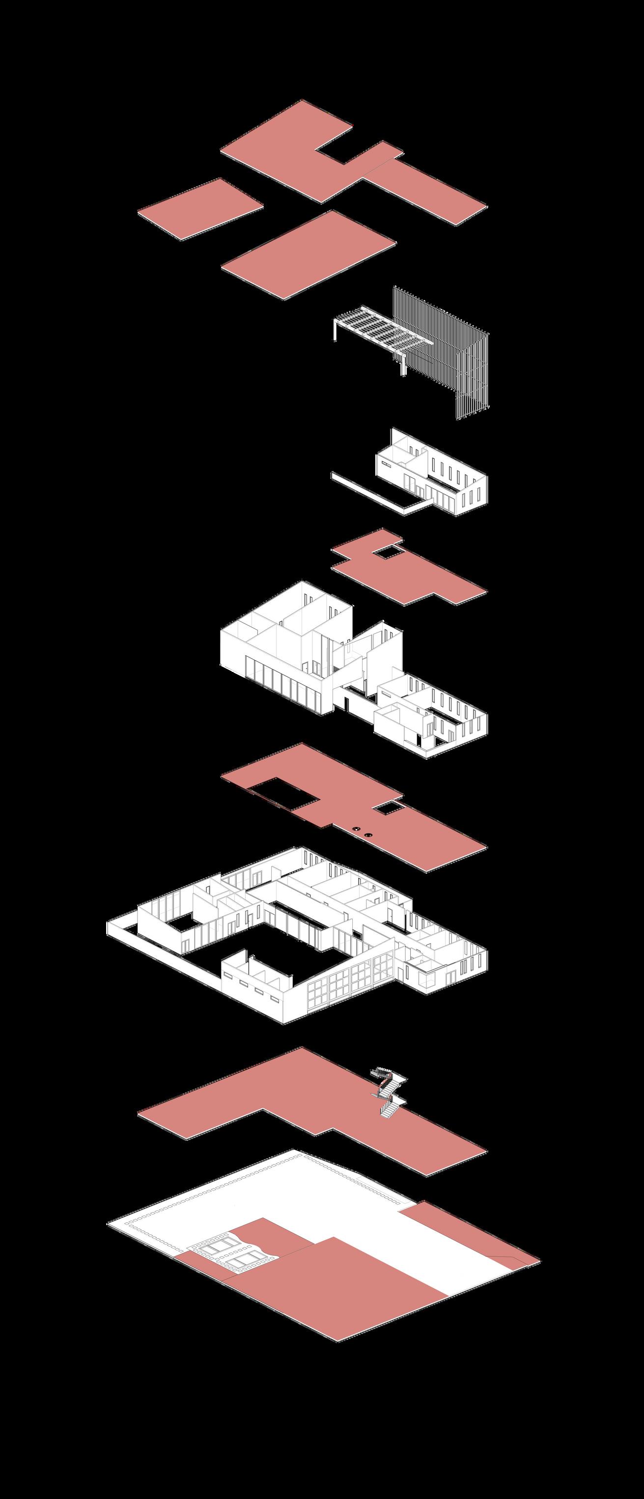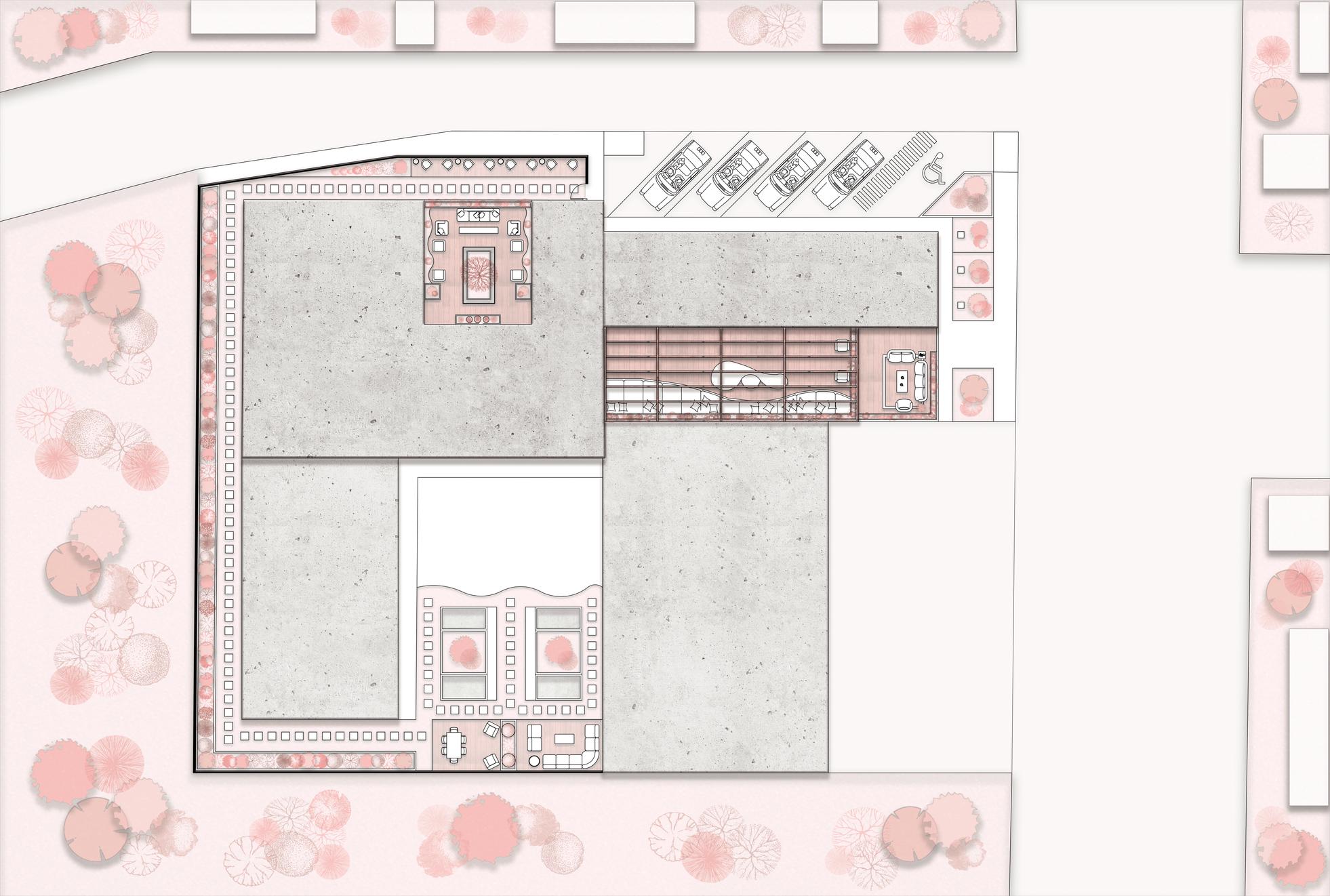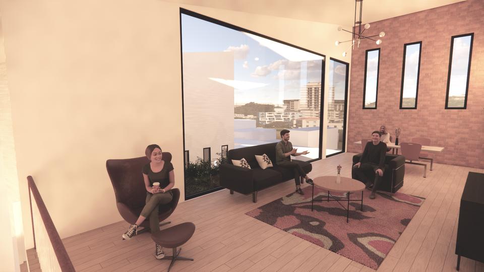 Los volúmenes extraídos para generar espacios de reunión y funcionar de terrazas