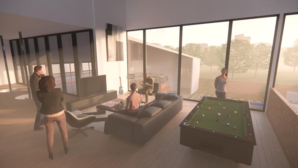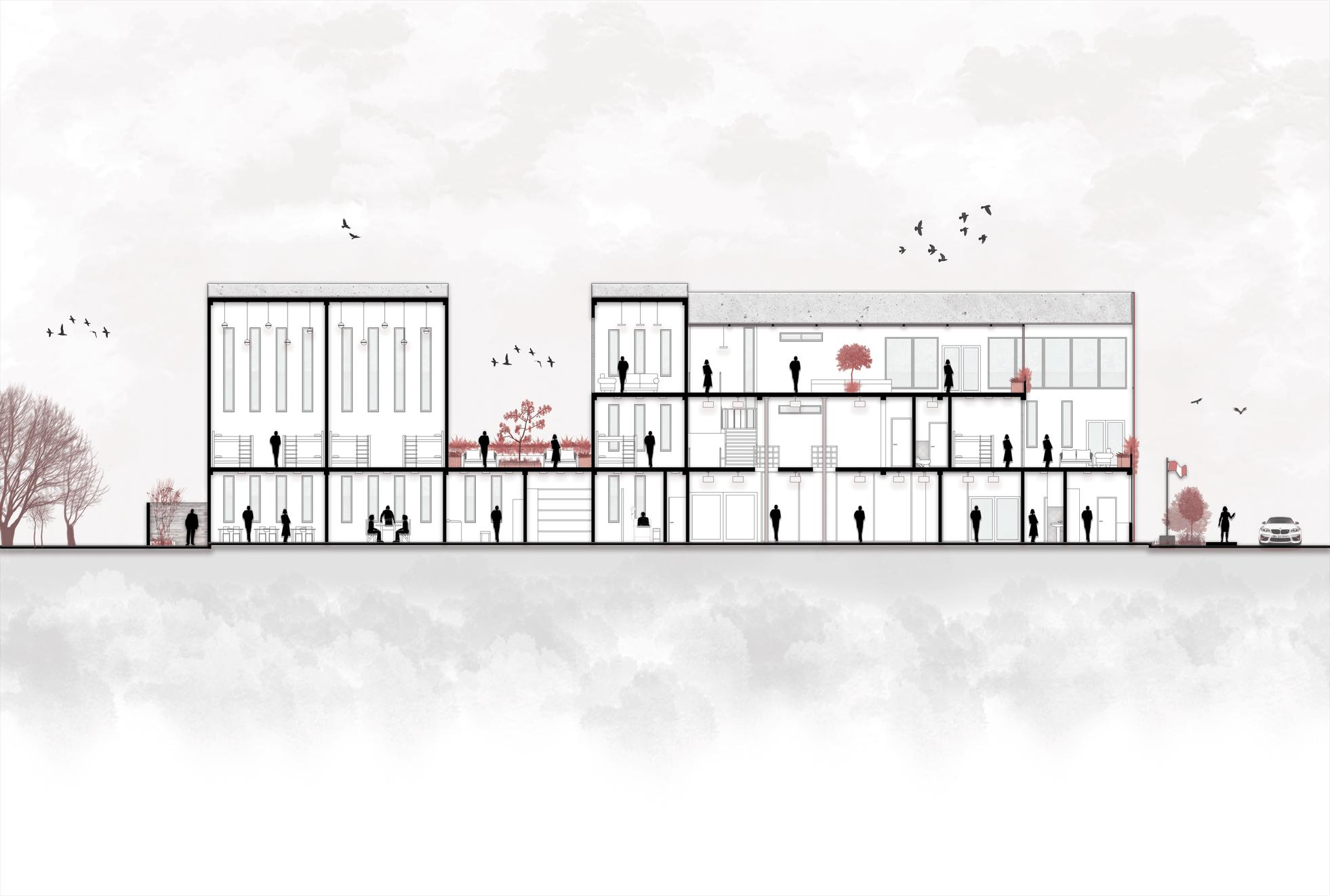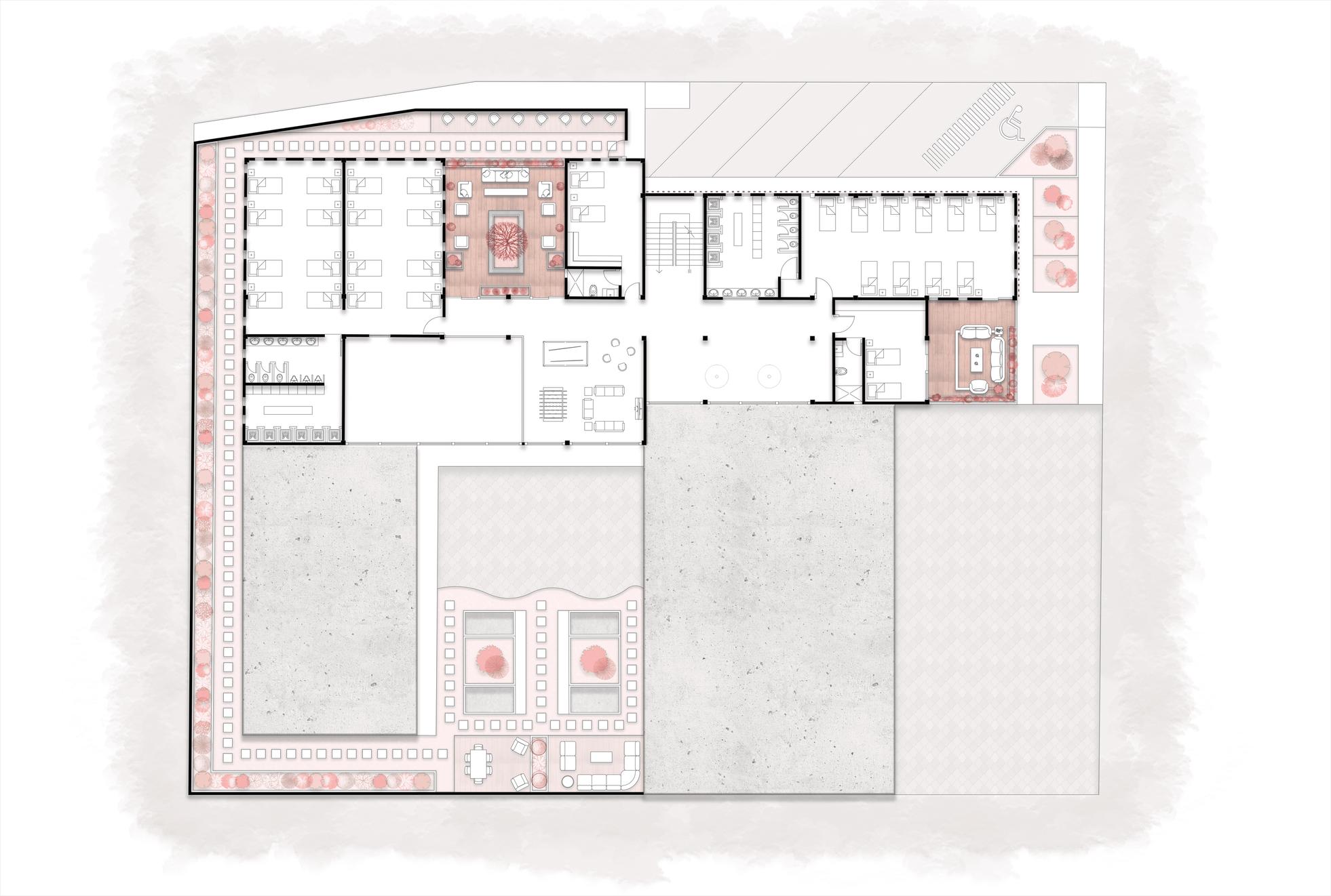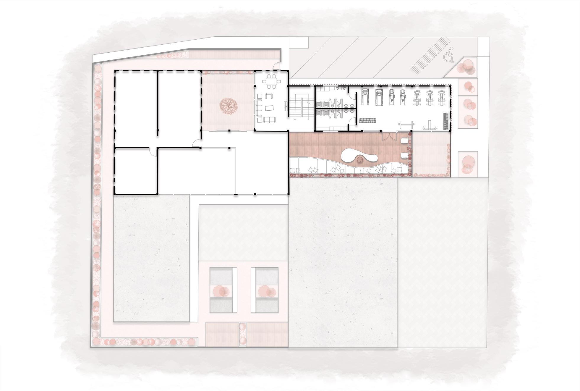 Los volúmenes extraídos para generar espacios de reunión y funcionar de terrazas