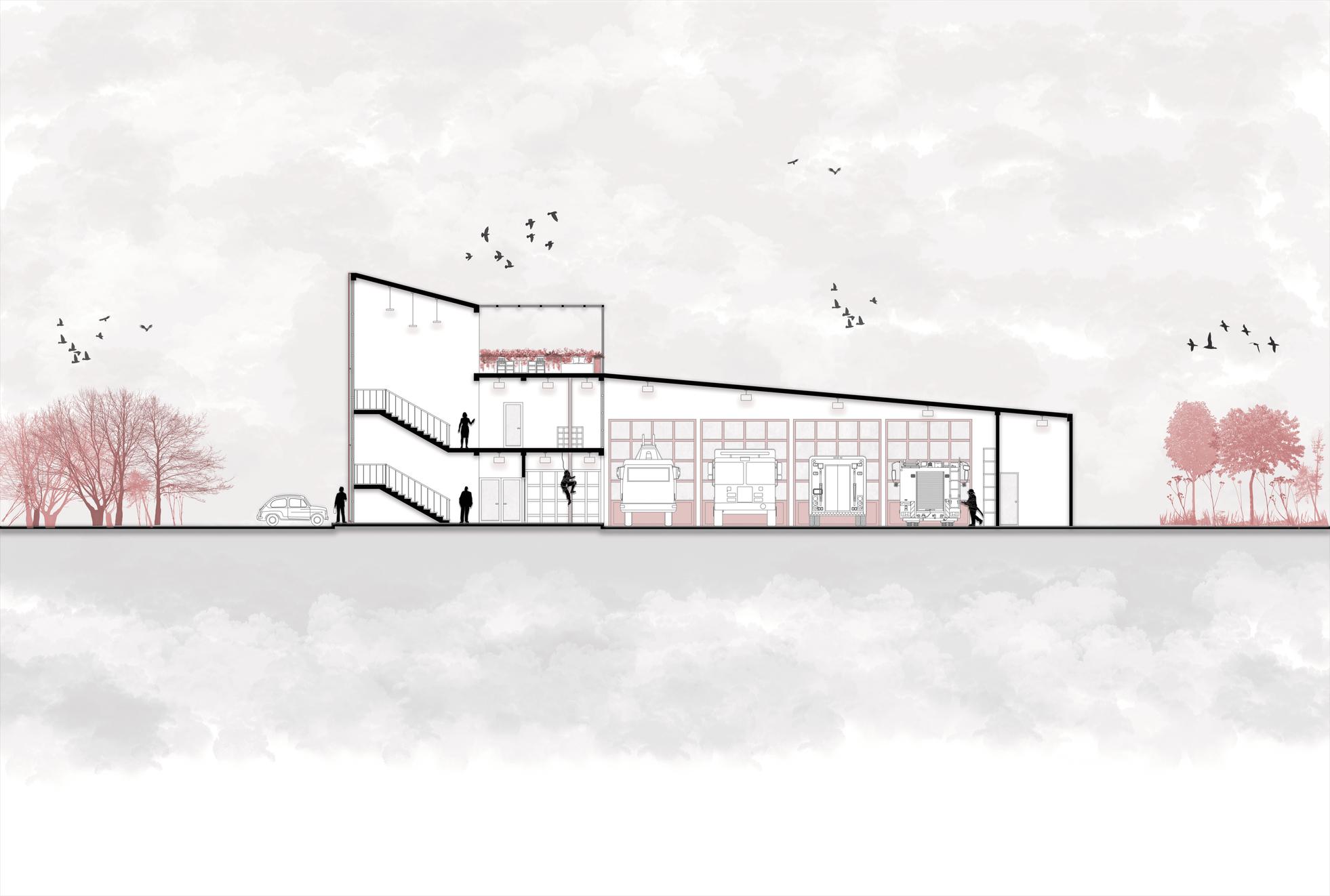 Espacio que responda a estas problemáticas con el estacionamiento de los camiones de bomberos