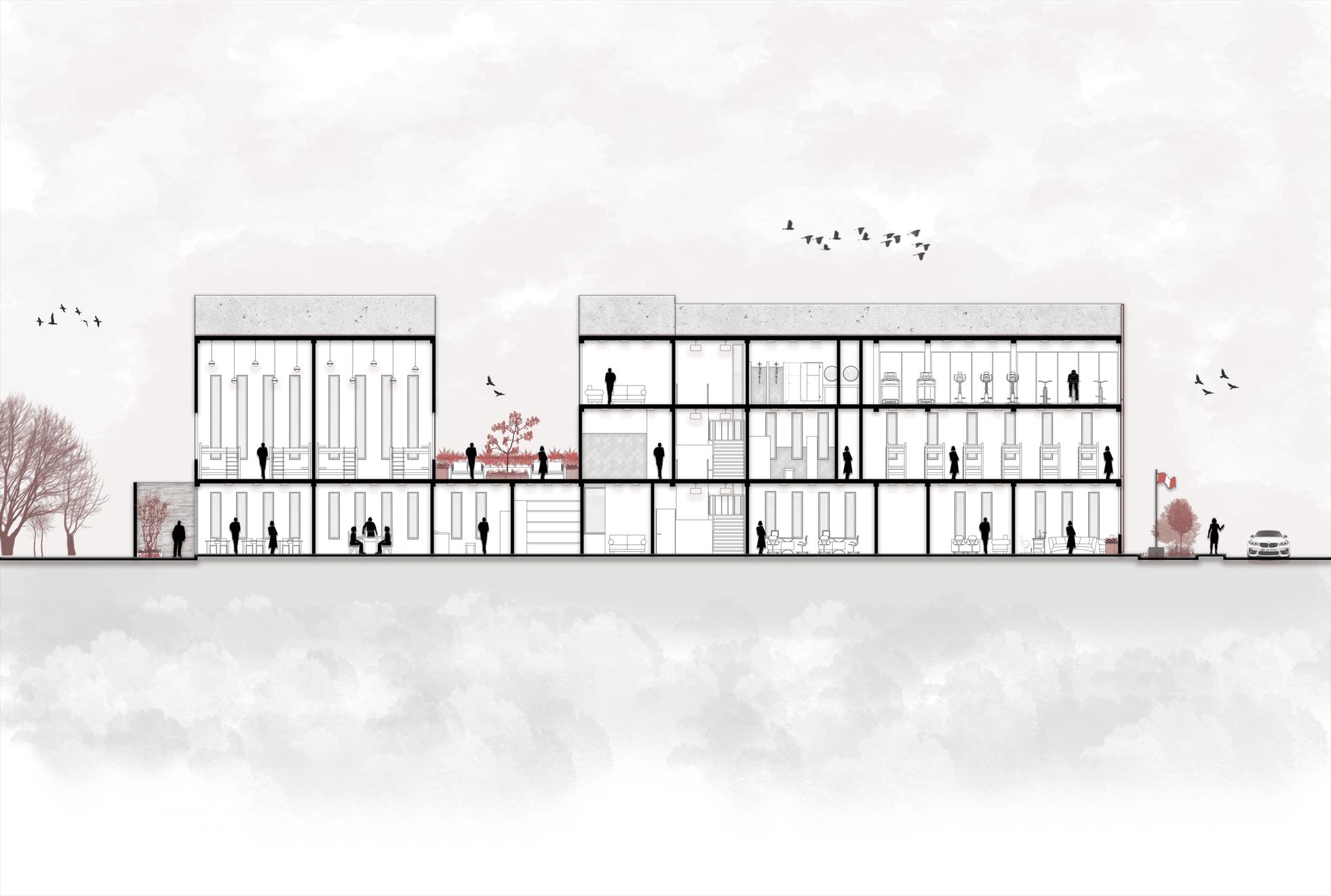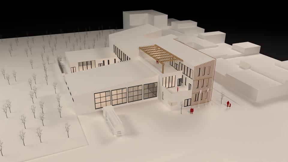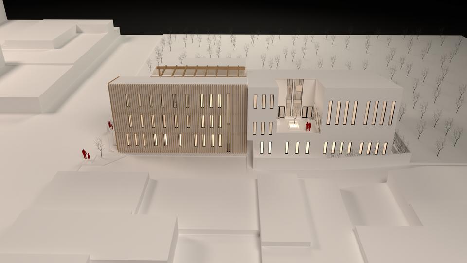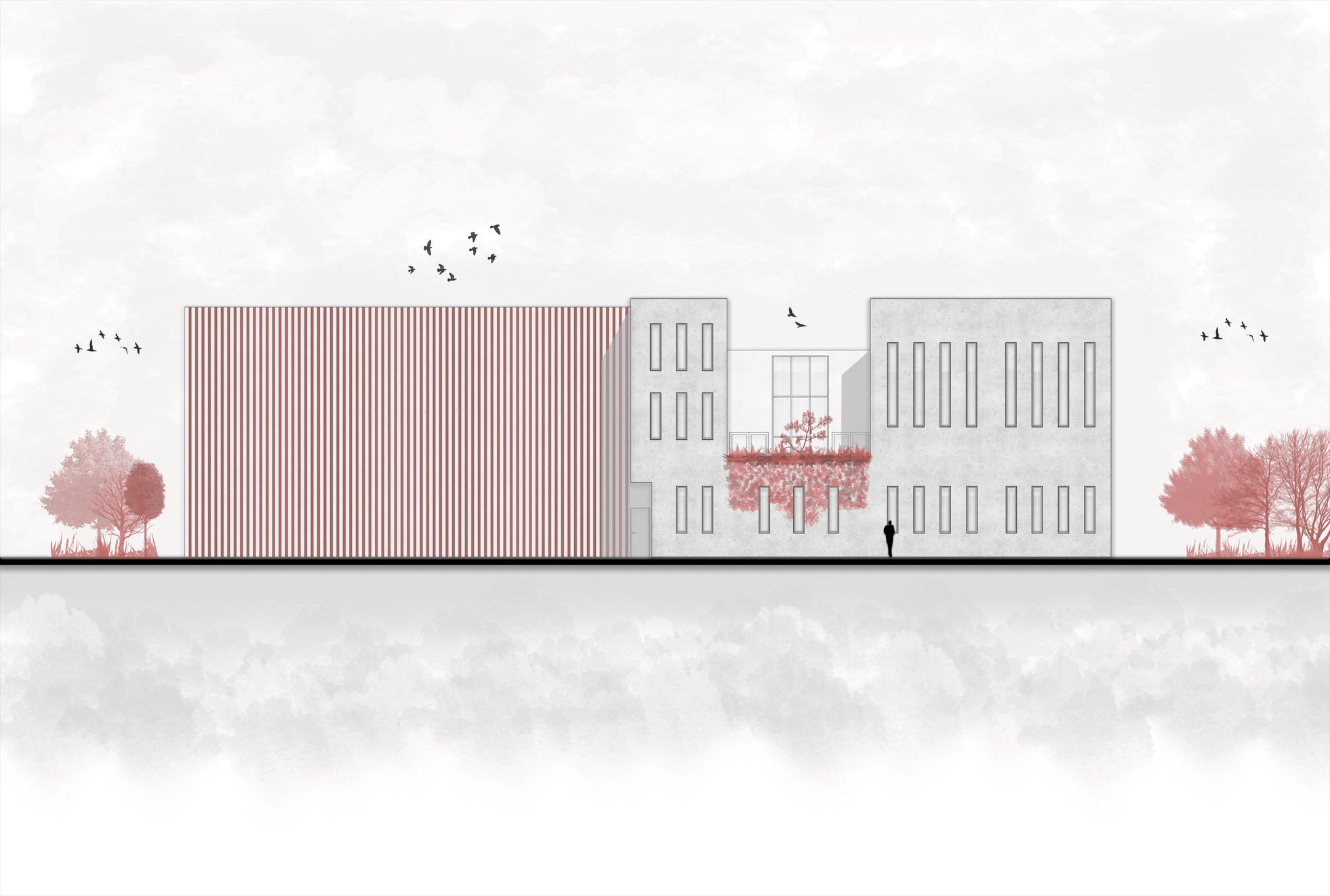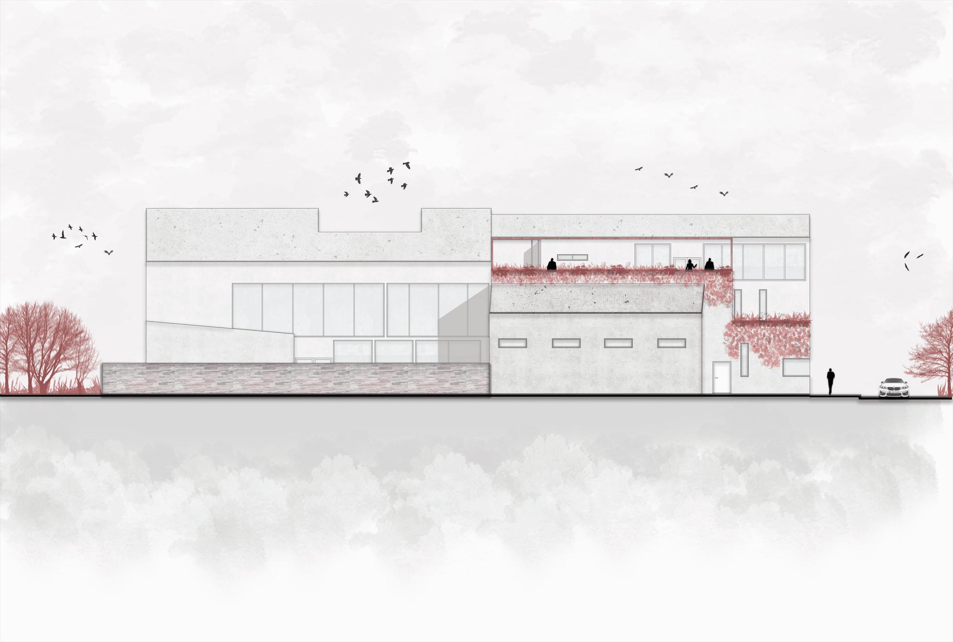 La forma del proyecto trata de envolver casi por completo al terreno, buscando protegerse de los vientos y lluvia
